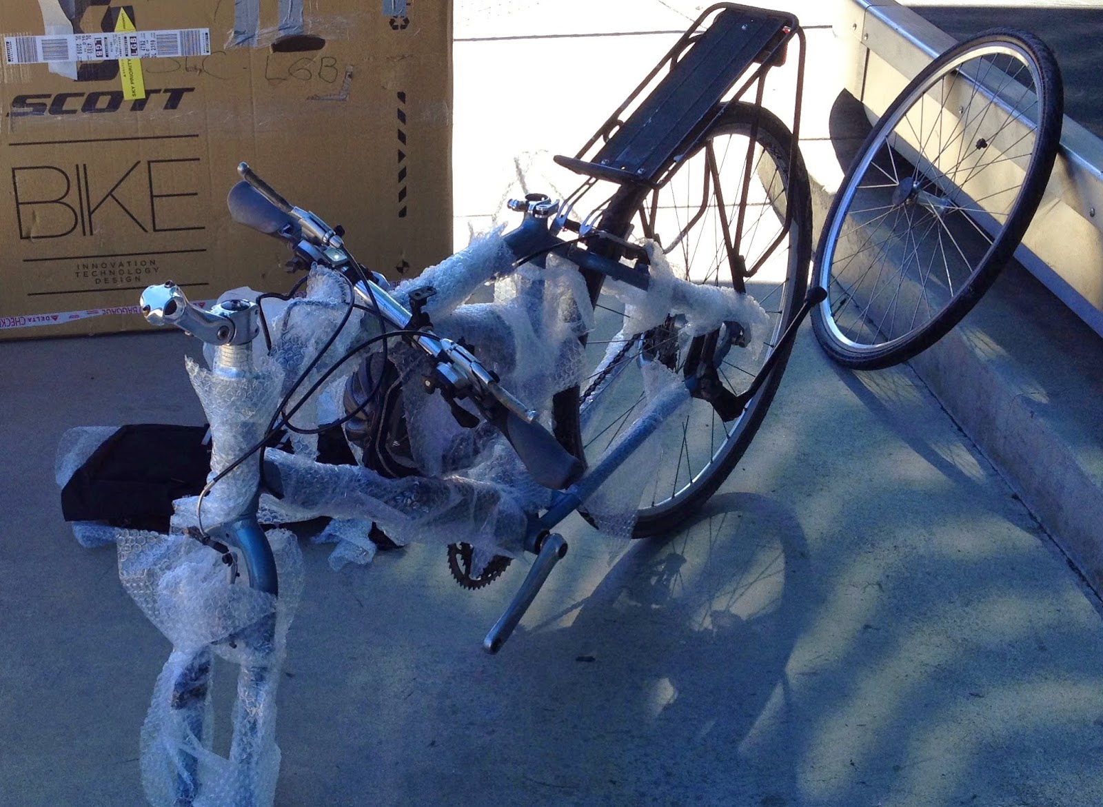 Newport Beach, CA: This attempt to ride from L.A. to Phoenix is underway. Arriving at Long Beach airport from Salt Lake and DC, the bike box was intact and waiting at baggage claim. It took 30 minutes or so to get it assembled, dispose of the box and get under way on a sunny 70 degree Southern California afternoon.