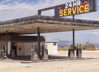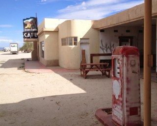 Until recently there had been one other possibility, but this too has vanished. There was a gas station and restaurant at Desert Center, an oasis 23-miles beyond Chiriaco. Long-distance cyclists used to appeal to their comrades to say hello to Doris, the friendly waitress at the café that boasted it hadn’t closed in 60-years. Unable to cover costs, it and everything else at Desert Center closed in July 2012, leaving behind a ghost town, or more accurately a derelict, empty rest stop. The only activity at Desert Center now is the exchanging of east and westbound loads for Fedex and UPS and the occasional driver who pulls off the interstate to sleep.