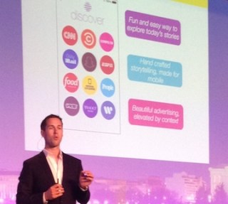 Snapchat’s Nick Bell demonstrating the ‘continuous scroll’ of Discover