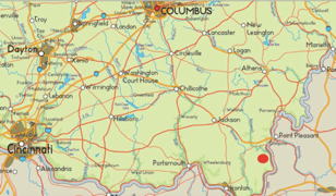 Red dot, rural southern Gallia County in Appalachian Ohio