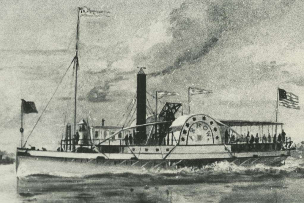 Eighteen-year-old Solomon Miller, my great-great grandfather, was a passenger aboard Southerner. He told his grand-nephew, Russel Hilbert, that all able-bodied men sprang into action, manning the pumps and stuffing mattresses and blankets into the gaping hole. Amazingly, Southerner’s engine continued to function until four o’clock the next morning. Finally, a rescue ship appeared, the side-wheeler Arrow. Ropes were attached and the stricken, heavily listing Southerner was towed into Trenton just south of the Detroit River. The Arrow, a smaller vessel, was making its regular run betwen Detroit and Toledo.