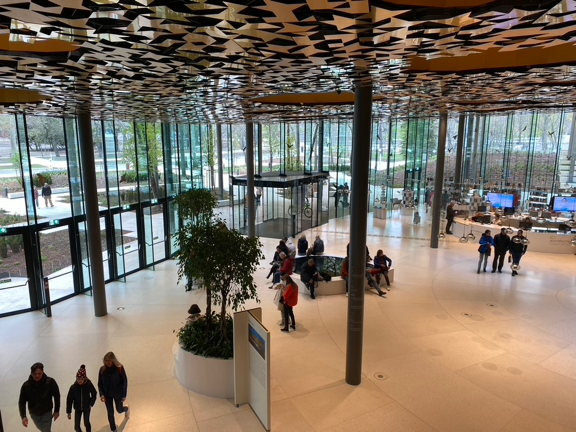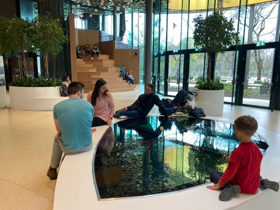 On the windswept spring day that I visited, the House of Music was a destination for family outings. The hemispheric sound dome on the lower level was especially popular. There 60 visitors at a time experience reverberating sounds coming from all directions.